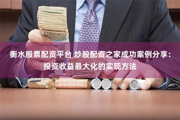 【更多...】选择期货配资代理时衡水股票配资平台,投资者应考虑以下因素: 炒股配资之家成功案例分享:投资收益最大化的实现方法 以下是一些成功案例分享,展示了如何通过炒股配资之家成功实现投资收益最大化的方法。 1. 选择合适的配资平台:首先,选择一个合适的炒股配资平台非常重要。在选择时,要考虑平台的信誉度、安全性、费用等因素。一个好的平台应该提供合理的费用结构、严格的风控措施以及优质的客户服务。 2. 制定详细的...